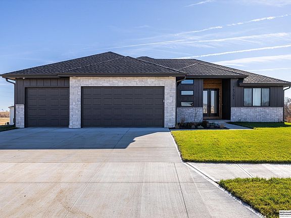 Contract Pending SSDL. Proudly presenting the Skyline floor plan by Colony Custom Homes! This spacious ranch features 5 bedrooms, 4 bathrooms, and a 3-car garage. On the main level, you will find a split floor plan with a private primary suite and 2 additional bedrooms. Downstairs, you will find a family room with a wet bar, 2 spacious bedrooms, and a full bathroom. Colony Custom homes is a custom home building company serving the Omaha Metro Area.