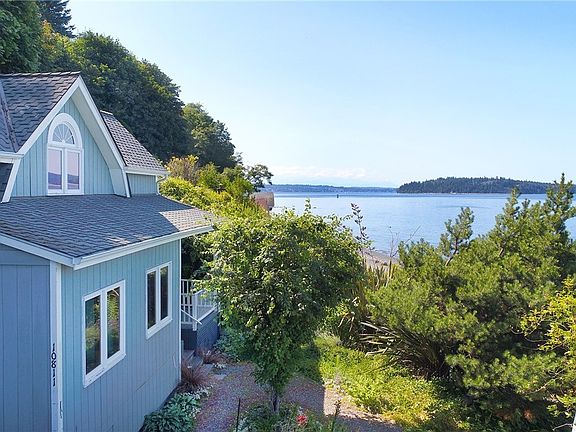 Picture-perfect seaside cottage: Spend your days enjoying sandy beach and spectacular views! This rare north end waterfront is set at the water's edge and offers all the feature that make it an ideal island destination. A picket-fenced yard and delightful covered front porch welcome you. Inside, the charm of this home's origins has been lovingly maintained and blended with thoughtful updates! A fireplace warms the interior; wood-trimmed double-pane windows frame gorgeous views across the Sound. Attractive fir and slate floors complement the open floor plan, and a handsome circular stair leads to the upper-floor bedroom. The home has a sewer connection and the roof extends over an attached storage area so there's expansion potential! You'll love exploring the 51' of sunny beach, and the easy drive-up location with ample parking is second to none. Truly a waterfront dream come true.