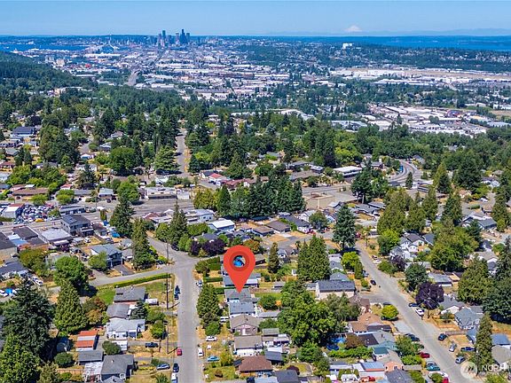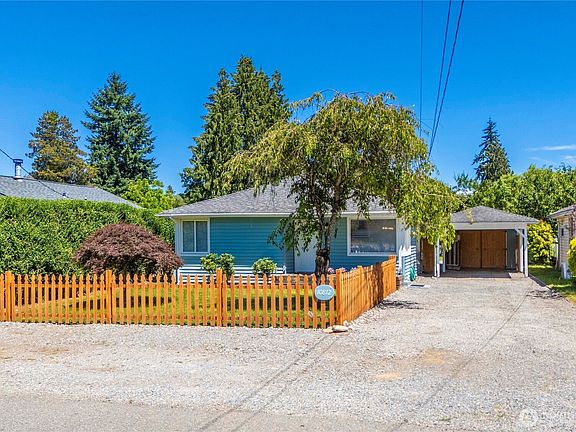 Adorable 1940's bungalow on a quiet street with a picket fence. Recently updated with new kitchen cabinets & countertops, flooring, & new paint throughout. The bathroom features a new tile surround, vanity & flooring. While the home has been updated, the charm has been preserved! You'll find hardwood floors in the living/dining room & bedrooms, builtin cabinets, & rounded doorways. Big windows allow for tons of natural light & the pellet stove will keep you cozy & efficient. Outside you'll find a beautiful aggregate patio & curved walkway, a detached garage & carport, and a long driveway with plenty of room for off street parking. The back yard is fully fenced and very private! All this & just a hop, skip, & jump to Downtown Seattle!