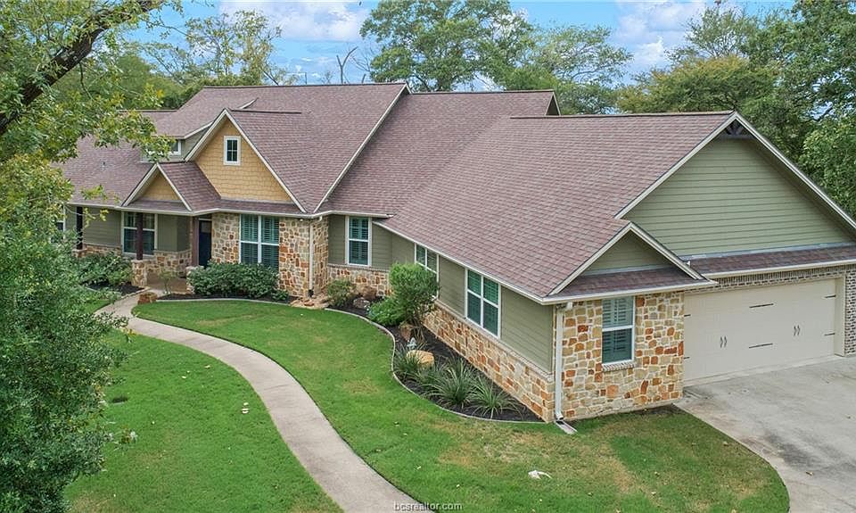 Shielded from the road by mature oak trees in the master-planned King Oaks community, this home is the essence of luxurious country living! Featuring plentiful natural light and a transom window design that carries throughout the home, this 4 bedroom, 3.5 bedroom home with office, gameroom, and enclosed porch features beautiful, flexible spaces to accommodate owner and guests alike with amenities such as a high efficiency HVAC heat pump installed in 2019, plantation shutters, and an extra large utility room. The living room opens to the entry, formal dining room, kitchen, and breakfast area, sharing a double-sided gas fireplace with the private office. Create a culinary masterpiece in the kitchen that features granite counters, an island with sink, a baker's buffett, 5-burner gas cooktop, double ovens and a walk-in pantry! The primary suite rests at the rear of the home, and offers a tiled walk-in shower, separate vanities, a door to the rear covered patio, and a huge walk-in closet. The split floor plan has a bedroom with en suite bath located on each side of the home, with an optional 4th bedroom located near the half bathroom off the garage entrance. Enjoy crisp fall evenings on the rear covered patio, inside the screened porch in front of the fireplace or relax in the back yard with a distant view of the lights from Kyle Field. Located 10 minutes from Bryan/College Station, King Oaks amenities include access to multiple lakes, a fishing pier and & nature trails, a 60 acre nature preserve, and luxury community pool, playgrounds, and pavilion!