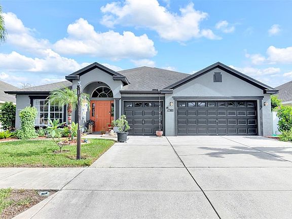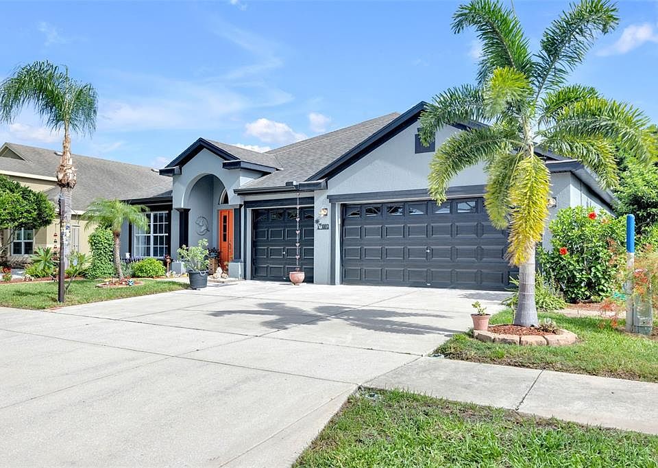 "SOUTH FORK" A spectacular home that greets you with a vibrant front door that opens to the sweeping views of high ceilings and the living space, dining room, and see through to the fenced-in backyard! The home is in one of the nicest neighborhoods in South Tampa! Florida luxury living at its finest. A subdivision of South Fork (Meadow Glen) tucked away on a premium lot and in a very friendly neighborhood. With a 3-way split floor plan, this home features 4 bedrooms and 3 full bathrooms. The great curb appeal is complemented by a large 3-car garage and front door. Natural light fills the home, and the high ceilings create a grand, airy feel. The kitchen boasts an abundance of counter space, corian countertops, beautiful wood cabinets, stainless steel appliances, a breakfast bar, a family room and living room. A great home office as you enter the front door and even space for a cozy dinette area. The kitchen seamlessly flows into the family room and opens up to the back patio, allowing for effortless entertaining whether you’re in the kitchen, family room, or outside. The primary bedroom offers an oversized closet and an en-suite bathroom. The luxurious en-suite bathroom includes an oversized garden tub, dual sinks, and a walk-in shower. The split floor plan includes one guest bedroom with a bathroom that exits to the lani. This home has two additional bedrooms with a shared bathroom. The outdoor space is perfect for relaxing or entertaining, featuring a large, covered patio with a screened enclosure. This home is truly move-in ready with a new A/C system (2022), a new water heater (2025), a home water filtration system, new gutters in front and back(2022), new paint outside (2022). The South Fork community offers great amenities, including a community pool, parks, playground, basketball courts, tennis courts, and walking trails. Conveniently located near excellent shopping, dining, and a variety of activities such as indoor skydiving, golfing, and just a short drive to theme parks, the airport, and much more! Give me a call today to see this fabulous home.