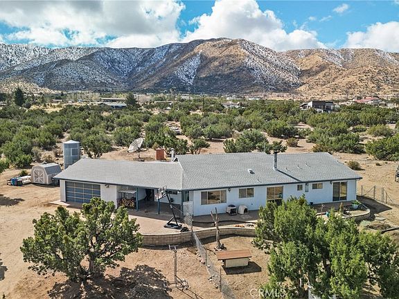 Nestled in the serene landscape of Juniper Hills, is a charming single-family one-story home offering both comfort and space. This home boasts 1,676 square feet with 3 bedrooms, 2 baths and is situated on an expansive 5-acre lot, providing ample room for outdoor activities and future enhancements. One of the largest lots in the area. The property's generous acreage offers potential for raising your own farm, gardening, recreational spaces, or even expansion projects. Its location provides a tranquil retreat while still being accessible to local amenities. Stunning views throughout the home. Tile and carpet flooring throughout. An open living room with cozy fireplace leads to the dining room with large windows to enjoy the sunrise and sunsets. The primary bedroom has sliding doors which open directly to the beautiful outdoor space. Property has two fully functioning wells. Whether you're seeking a peaceful countryside residence community located in the foothills of the San Gabriel mountains or a property with vast potential, this property presents a unique opportunity in the heart of the charming rural area of Juniper Hills. It is a medium distance drive to Palmdale/Lancaster or Santa Clarita for shopping and dining. Mountain High Resort is nearby, and a 2-hour drive to Big Bear.