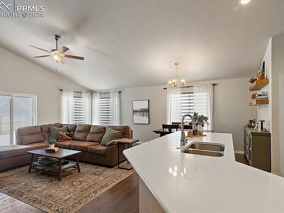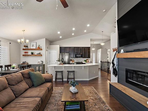 Located in Lorson Ranch, this 2019-built ranch home offers 5 bedrooms, 3 bathrooms, and a fully finished basement, perfectly combining style with function. The main level includes three bedrooms, while the finished basement features two additional bedrooms, ideal for guests or extra space. Enjoy custom touches like a fireplace wall with hidden cabinetry for electronics and a remodeled laundry room. The basement includes a wet bar, perfect for entertaining. Outside, the fully landscaped yard offers beautiful mountain views. With a two-car garage and thoughtful upgrades throughout, this home is move-in ready and truly stands apart. Schedule your showing today!