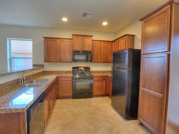 $500 TOTAL MOVE-IN AVAILABLE! Nestled in the beautiful community of Sierra Ranch we feature ceramic tile flooring in all the right places with neutral upgraded carpet & 9ft ceilings. Kitchen boasts Undermount Stainless Steel Sink with 36'' staggered upgraded stained Maple Cabinets in a rich Nutmeg color w/ crown molding, Gas Range/Oven,& ALL Whirlpool Black Appliances, even the Fridge & Overhead Microwave! Spacious lots large enough for a pool with front lush landscaping included & covered patios.2 inch faux wood blinds on all the front windows & carriage lights for extra security. Keep your beautiful home energy efficient with a 13 seer HVAC unit with multi-zone capability. Pix of similar home.
