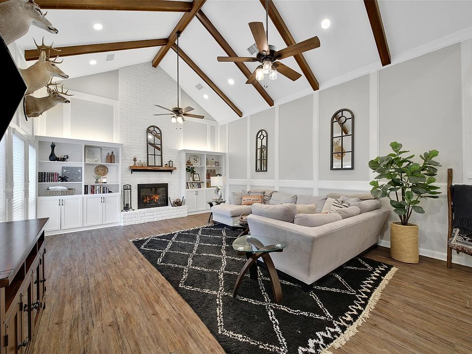 This beautifully updated French Tudor perfectly blends classic charm with modern style! Energy-efficient upgrades include spray foam insulation (home and garage), a state of the art HVAC system, double-pane windows, a tankless water heater, and Energy Star appliances. Inside, you’ll love the remodeled island kitchen with granite counters, shaker cabinets, under-cabinet lighting, stainless appliances, and a butcher block island. Kitchen is open to the dining, living room and dedicated study. The family room wows with a soaring cathedral ceiling, wood burning fireplace and exposed beams. The primary suite downstairs has a spa-like bath complete with soaking tub, large walk in shower, and dual closets. Upstairs has four spacious bedrooms and two full baths. The oversized garage is foamed and air-conditioned, and the big backyard offers plenty of shade! Perfect for those Texas summers! This is a rare find in an established community close to world class shopping, dining, and entertainment.