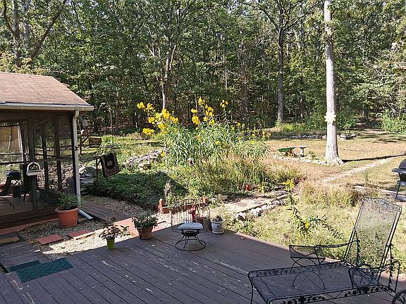 Big oaks, quiet street, semi-secluded, nice neighbors, close to town with abundant wildlife. Low maintenance exterior, newer double hung replacement windows, huge, attached garage/workshop, ADA accessible master bed/bath on lower level with walk in closets, 4 beds/2 full baths on upper level. Large, isolated TV room with wood/stove, dining room off of kitchen, living room adjacent to master bed. Screened in patio, large deck, frog/fishpond with waterfall, circle drive, garden and 1/4 acre of flower beds with perennials and several species of wildflowers in place. A beautiful place in spring/summer. Storage shed in back near the garden, 3 year supply of dry, seasoned firewood on site, storm shelter located inside the shop below grade.