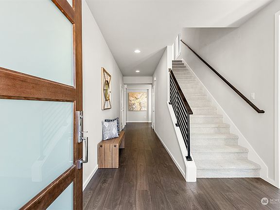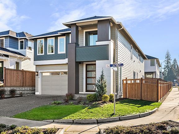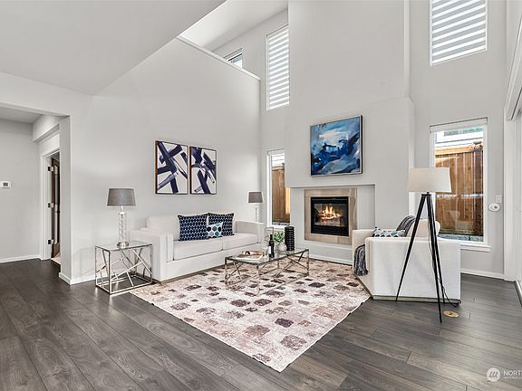 Like-new Lake Stevens home on a spacious corner lot! Enjoy the open layout with soaring ceilings, living room with gas fireplace, sunny dining room, lovely laminate flooring, central AC, modern light fixtures, and expansive windows. Entertain in the designer kitchen with high-end appliances, large center island, and a butler's pantry. The main level also boasts a convenient office nook, plus a versatile bonus room with French doors. Head upstairs to another living/flex area, and 4 bedrooms including the relaxing primary suite with 2 large walk-in closets, and a stunning 5-piece bath. Private fully-fenced backyard with a manicured lawn and covered deck boasting an outdoor gas fireplace. Community playground and set in a convenient location!