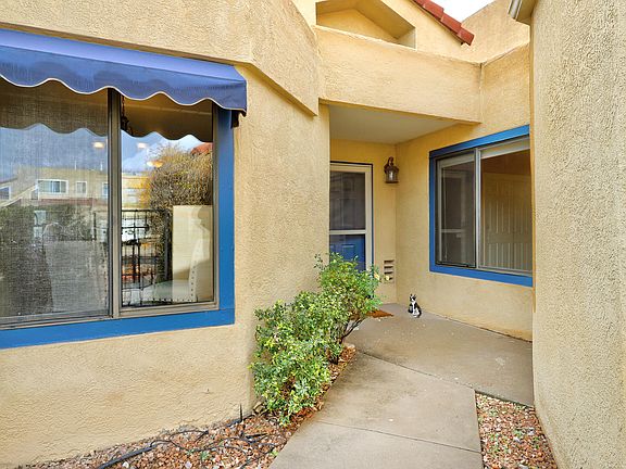Beautifully maintained 2-bed, 2-bath townhome in the desirable Academy Ridge East neighborhood of the North East Heights. This inviting home features brand-new Samsung kitchen appliances & washer/dryer, stunning mountain views, a bright kitchen with breakfast nook, raised ceilings, and a spacious living area with a gas fireplace. The primary suite offers a jetted tub, separate shower, and generous closet space. Enjoy a private courtyard, a serene shaded backyard, refrigerated air, and an attached garage. Brand new trim and front door paint. Conveniently located near shopping, dining, parks, and commuter routes. A perfect blend of comfort, privacy, and NE Heights living--don't miss it! Much of furniture can be negotiated.