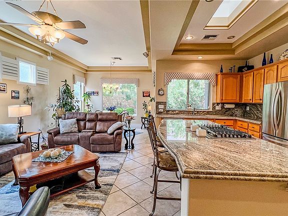 - Description: Breakfast Bar/Counter,Breakfast Nook/Eating Area,Custom Cabinets,Granite Countertops,Lighting Recessed,Stainless Steel Appliances,Tile Flooring