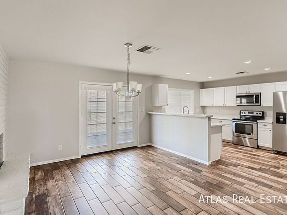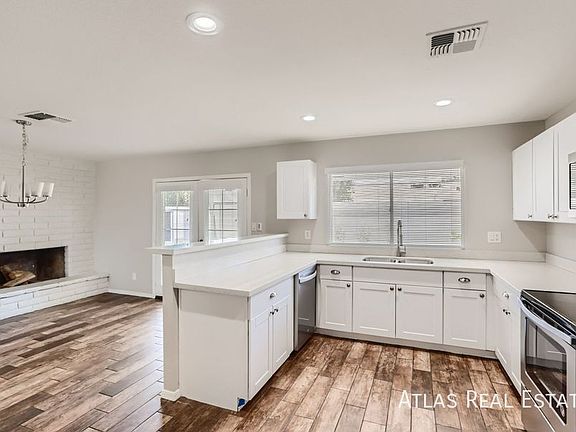 Eat-in kitchenGas stoveTons of natural sunlightBreakfast barRecessed lightingAmple cabinetryCovered patio area