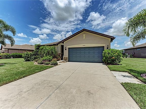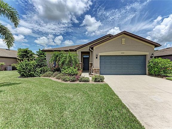 Welcome Home to this Gorgeous 3/2/2 plus a den home on a Beautiful Pond! This home has all the upgrades including large tile throughout the living areas. The huge island kitchen has rich cherry cabinets cabinets with beautiful counter tops and stainless steel appliances. The garage has been extended 4 ft to make it 24 ft deep. They have also upgraded the structural lanai and added extra concrete which is great for entertaining or just enjoying the beautiful pond views. This home boasts a large open floorplan, a huge laundry room with wash tub, and a flex space that would be a great office or homework center (use your imagination). The owner has also installed gutters to protect the lush landscaping. This home is immaculate and looks brand new. Harrison Ranch is located off of U.S. 301 and is close to shopping, brand new schools, 2 golf courses, major interchanges for easy commuting. The master planned community also has heated Jr. Olympic size pool, Clubhouse with media room, library, gaming room, fitness center and catering kitchen. The community also has miles of walking trails, lighted tennis courts, handicapped accessible playgrounds, a full time activities director and more. This home is a must see! Hurry on this one!!!