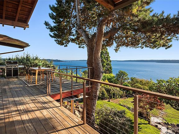 Prime bluff setting in the coveted Arroyos, this extraordinary 5 bed + den, 4 bath home marries timeless Pacific Northwest charm with the elegance of a European villa. Soaring ceilings with exposed wood beams, cherry hardwoods and walls of glass frame sweeping views of Puget Sound, the Olympics and the silhouette of Mt. Rainier from the primary suite. Designed for versatility and connection, with a full mother-in-law, perfect for extended living or guests. Expansive indoor-outdoor flow brings entertaining to life where hosting parties on the large deck is a breeze. Tend to plants in the greenhouse, enjoy the private Arroyo beach access or just take in the natural surroundings and refined architectural details, a truly incredible residence!