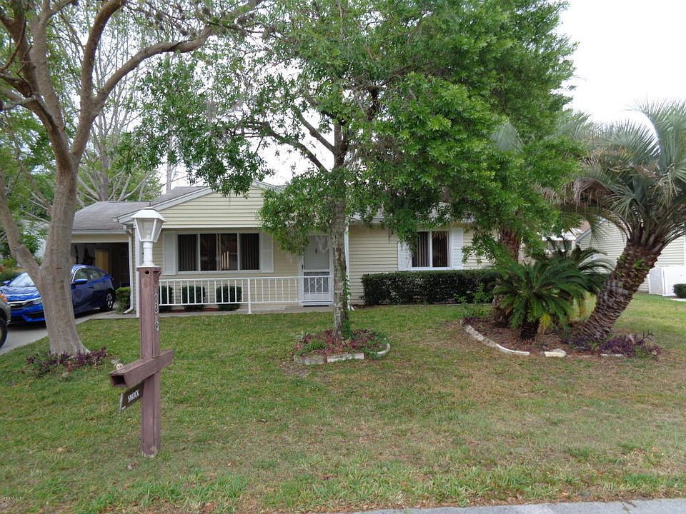 Located in a great community with tons of activities and low HOA fees. Move in ready. Large living room that is open to the dining room. Pass through in the kitchen. Kitchen has abundant cabinets and storage. Big M. bedroom and walk in closet. Walk in shower in bath. Guest bath and bedroom down the hall. 2 access' to M. bedroom and kitchen for easy movement. Enclosed patio w/screen and windows.Furniture conveys with the property.