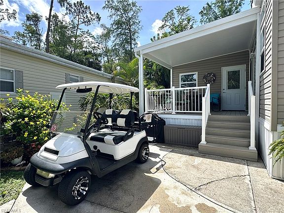 Charming 2020 Chariot Mobile Home with Expansive 2024 Addition and Spacious Front Deck. Welcome to this beautiful 2020 Chariot mobile home featuring two bedrooms, and 1.5 baths. With high ceilings and an open layout, this home exudes spaciousness and light. The sellers added a stunning additional room with its own 1/2 bath in 2024 and included impact windows, creating an impressive living space perfect for guests or entertaining. The spacious front deck invites you to relax and enjoy the serene surroundings. The property includes a golf cart and two bikes, making it perfect for exploring the community or enjoying the outdoors. A 5 x 7 shed in the back offers additional storage, while the rear area of the home provides a peaceful oasis feel, perfect for unwinding or hosting friends. With high ceilings and an open layout, this home exudes spaciousness and light. Corkscrew Woodlands offers tons of activities from tennis, bocce, pickleball, horseshoe courts, clubhouse, large community pool, shuffleboard courts, paddle boats for residents, nature trails and much much more. Great location convenient to FL white sandy beaches, restaurants, shopping and airport. Located on an outer circle in a welcoming community, this mobile home is a must-see!