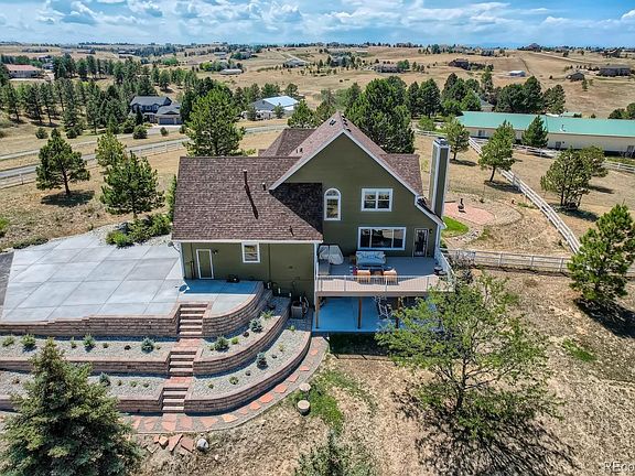 Country living at its best in exclusive Amanda Pines Estates! Situated on a cul-de-sac lot with over 6 acres of beautiful land, this home has gorgeous views and is perfect for relaxation, recreation, and your animals. Enjoy fully fenced (white vinyl) pastures complete with a barn that has a tack room and solar lighting. Huge 2000 sq. foot garage/outbuilding with concrete floor, insulated walls, 220V service, 16' garage door (perfect for an RV, boat, trailer) and skylights. All your toys and horses will have plenty of room to enjoy country living at its finest. The new, oversized composite deck is the perfect place to enjoy the beautiful Colorado days/nights and sunrises/sunsets! The home is light filled with 360 views of the beautiful views through all new Pella windows on the main floor. Enjoy the open floor plan with slab granite kitchen with island and stainless appliances, breakfast nook, attached dining room and a great room with a gas fireplace. Walk out from 2 different doors onto beautiful composite decks, one of which was recently redone and made larger. A separate laundry room and powder bath complete the main floor. Upstairs you have 3 bedrooms including a master suite with a large ensuite 5 piece bath, jetted tub, heated floors, large walk-in closet and walk-out deck with views forever. The lower level has tons of light and features a bedroom, remodeled bath, storage and large rec room with a walkout door (perfect for an in-law suite) onto an all new, expanded concrete patio. The attached 2 car garage has heat and a handy water spigot. The new retaining walls have electric outlets to make holiday lights easy, landscaping/fenced garden with drip system/2 water hydrants and concrete driveway are just a few of the upgrades. Move right in with tons of new features - including roof, 5 Ton AC, gutters, exterior paint, refinished solid oak floors, iron stair balusters and door hardware. High speed fiber optic available through Maverix.
