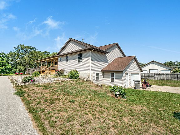 Welcome home to this beautifully maintained open floorplan with acreage and outbuildings! Main level laundry plus additional lower level laundry. Plenty of outbuilding space and acreage for HORSES! A wood burner can be used to heat the house plus 30x56 pole barn. The 30x66 pole barn has a large storage loft. Outbuildings feature electric and several overhead and slider doors to fit any need. Modern home features Andersen tilt-in windows for easy cleaning and plenty of natural light. A partially unfinished walk out basement with garage access has significant potential for any layout with an additional full bath. Don't miss out on this gem. Call today to schedule your private showing!