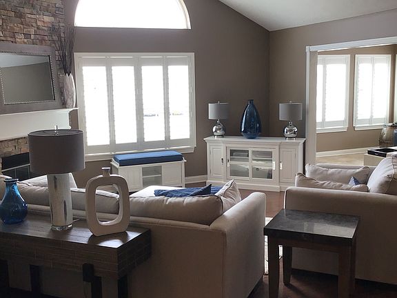 Beautiful home in Timber Run. Water views from every room. Custom cabinets and heated tile floor highlight remodel of master bath and closet. Relax on the patio as you enjoy the view of the pond, fountain and wildlife. Enjoy the maintenance free community including the community clubhouse, pool and exercise room. Open concept with vaulted ceilings with lots of light. Upgrades include plantation shutters throughout, sun tunnel, finished garage floor. Fantastic opportunity.