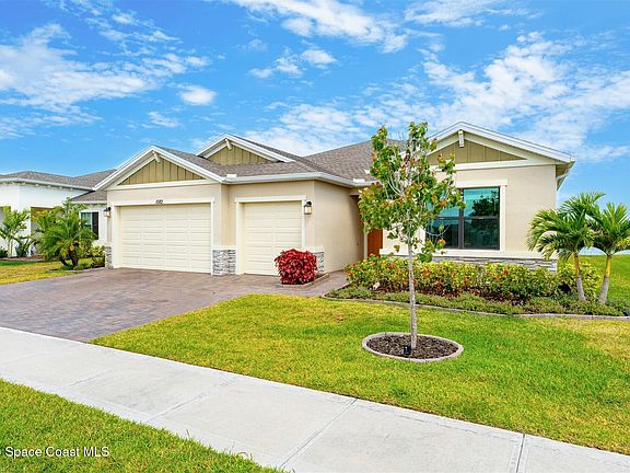 Rare opportunity to rent this beautiful waterfront 3 bedroom plus den, 3 bath, 3 car garage home in Bridgewater, Viera's resort style 55+ gated community! This stunning 3 year old home is meticulously decorated in the popular palette of whites and grays and has every option: plank tile throughout, crown molding, tray ceilings, custom lighting with undercabinet and pendant lights, 8' doors, gourmet kitchen with wall ovens and cooktop and incredibly large island! Amazing expanded screened lanai! Nothing was overlooked, including Impact Windows and Sliders (no hurricane shutters to install!). HOA takes care of the lawn maintenance! Bridgewater's breathtaking private clubhouse has a heated pool and spa, fitness center, billiards room, lighted tennis and pickleball courts, and even a movie theater! Close to the ocean beaches, Space Center, cruise ports, Brevard Zoo, shopping and dining! Please note, Bridgewater is a 55+ community.