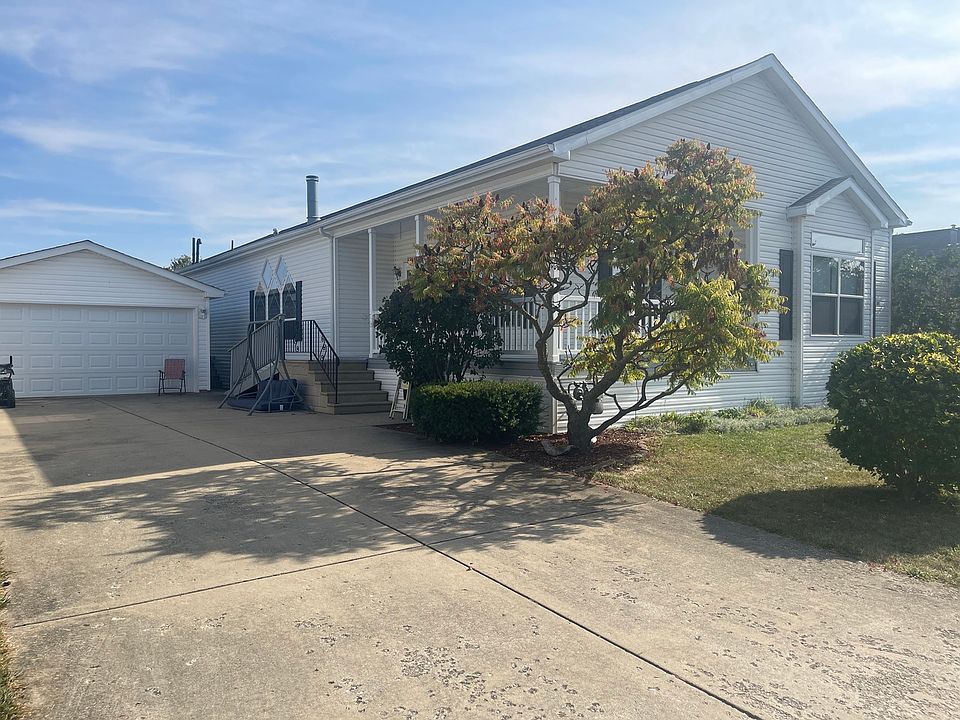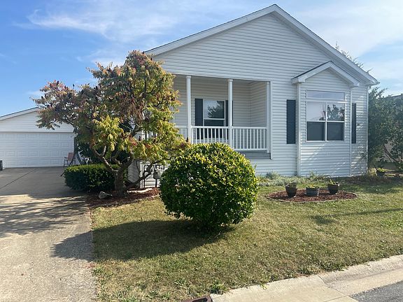 This is probably the biggest triplewide approximately 2700 sq ft in the State of Illinois and Oak Ridge. This is an all-drywall Liberty triplewide with a 5/12 roof pitch. It is on one of the biggest manufactured home lots. This section of Oak Ridge that this home sits on longer lots compared to 100' foot long lots in the rest of the community. The monster-sized home theatre home features its own home theatre/man or woman cave room 14x26 with wet bar and 1/2 bath and platform for TV. Been looking for a home and everything is postage stamp small then this is the home for you!! Home is all drywall with 9' ceilings. The home also comes with a big 2 car garage and a long and wide concrete drive. Wrap-around porch in front plus 2nd deck on the side of the home. Box bay in the front of home and expensive multiple diamond-shaped windows in living room. Handicapped Ramp to the front door. Kitchen is huge with an eat-in area and huge island with barstools that are included. Newer cooktop on island. All kitchen appliances are included but seller never used the dishwasher so that is as-is. It may or may not work. 42 inch cabinets in the kitchen with glass accents that go perfect with the 9' ceiling. The windows are the 9' ceiling window package. Fireplace in the living room. When the home was ordered the 2nd bedroom was increased by 4 ' to have a massive bedroom 2. The master bedroom has a parent's retreat or office attached to the bedroom. The master bath has a whirlpool and shower. Newer washer and dryer and newer high efficiency furnace and newer water heater. Foyer with closet. TV, amplifier, surround sound speaker as-is will stay with the home. Oak Ridge has lower lot rents than all of the 55 and over competing parks in the other suburbs. Room sizes are approximate.