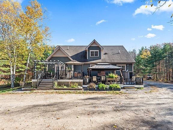 Welcome to this beautifully designed 4-bedroom, 3 full, 2 half-bath home set on just over 2 acres. This unique property features a high-end kitchen with dual ovens, a Capital - 6 burner propane stove with a brushed bronze pot water fill feature for your convenience. The open floor plan provides a bright living space. Quality finishes continue throughout from the radiant-heated ash flooring in the living room to the mahogany porch and the oversized Trex deck. The versatile loft includes space for a bedroom or office opening into a spacious family room with two storage closets. The partially finished lower level offers bonus living space currently used as a bedroom with a kitchenette and full bath. Conveniences are scattered throughout including hookup for a hot tub and a fenced in front yard. Enjoy a perfect blend of modern comfort, flexibility, and privacy in a serene setting.