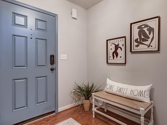 Don't miss this stunning townhome with three large bedrooms, each with ensuite bathroom, with neutral paints throughout. Two covered front porches with mountain views. You'll love the beautiful hardwood floors in foyer, and throughout the open main level. Gather in the great room featuring electric fireplace with tile surround flanked by built-in shelves. Modern kitchen features white cabinets, granite counters, island workstation with cooktop and extended seating, coffered ceiling and stainless appliances. Formal dining room features sparkling, modern chandelier and opens to front covered porch. Work from home in the office with built-ins and pocket doors. Upstairs, relax in the owners suite with private bathroom with soaking tub and separate shower. Second large bedroom also features private bath. Bedroom 3- also with private bathroom located on the ground level is perfect for guests! Large garage and attic with flooring and lighting added for easy storage too!