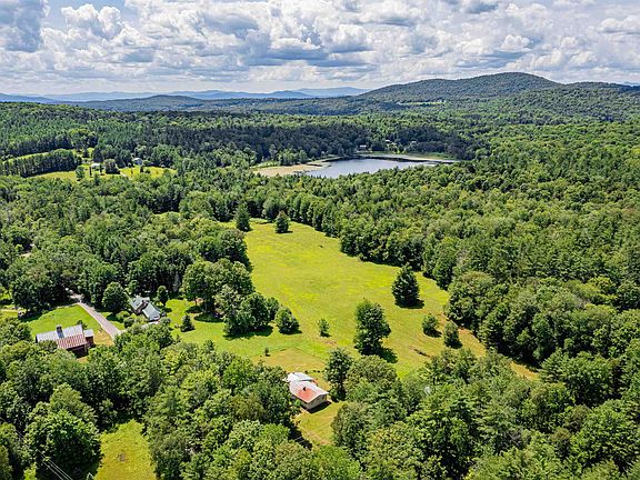 You will be enchanted with the setting on 31+ acres with 1200'-1500' of frontage on Bliss Pond and a mix of meadow and forest. Within the Historic Preservation District on Old West Church Road. This land also abuts the Calais Town Forest. Mature blueberry bushes and apple trees are near the house. The home is a one level design. The kitchen has cherry cabinetry and flooring. A big screened porch on the front of this home is a great place to enjoy a morning coffee. Beside the kitchen a large den has a brick fireplace and large windows overlooking the field. A door connects to the rear deck. A step up to the dining room and living room both with hardwood flooring are wonderful for gatherings. Three bedrooms and a bathroom with a large shower are on the north end of the house. The full basement under the original residence includes laundry and utility space. A crawl space is under the addition that includes the kitchen and den. Outbuildings include a wonderful old barn across the road on approximately 3 acres. This grand structure has a drive up ramp. A separate 25'x24' woodworking shop is behind the house and has potential for shop or studio space and potential with more extensive renovations. This building is constructed on piers and has electricity. Other outbuildings include a woodshed and garden shed.