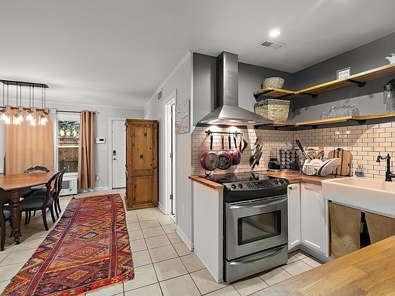 - Exterior features: Ceiling Fan(s), Eat-in Kitchen, High Ceilings, Living/Dining Combo, Off Street