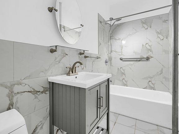 Elegant bathroom with marble tile and flooring