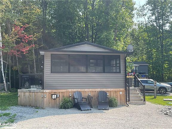 Welcome to your home away from home! Nestled in a serene, peaceful community, this 3-bedroom, 2-bathroom 800 square foot cottage offers the perfect balance of relaxation and social connection. Ideal for family time or entertaining friends, the open living spaces flow beautifully from indoors to outdoors, where you can enjoy your evenings on the screened-in deck and sunroom. The 3-season resort-style community fosters lifelong friendships with a variety of social events and gatherings, making every season special. Take a dip in the refreshing pools, or unwind in the tranquil surroundings that offer a true escape from the hustle and bustle. Located just a short drive to the amenities of Washago, Orillia, and Gravenhurst, you'll have everything you need within easy reach. Whether it's an adventurous day out or a quiet evening under the stars, this cottage offers the perfect blend of comfort and community. Don't miss out on making this serene retreat your very own! You can choose to keep the cottage at Shamrock Bay Resort and pay the seasonal fees for 2025 of $7500 + HST, or have the cottage removed and relocate it to your own property. The cottage is available to be part of the rental pool as well, but must be rented through the resort. No private rentals are allowed.