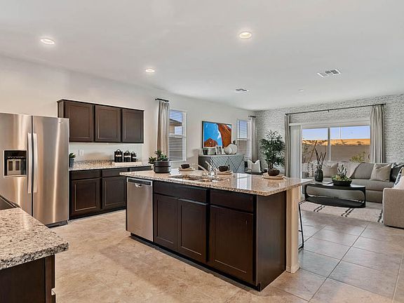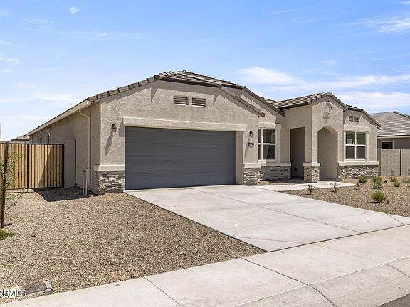 *Home ready now!* *Double gate!* The 'Onyx' floor plan is a single-story home featuring 4 bedrooms + study, 3 bathrooms and a 2-car garage. This plan offers a guest room with en suite, plus a separate dining room and large kitchen that opens to the great room - perfect for entertaining family and friends! The kitchen boasts espresso-colored cabinets, granite counter tops and large center island. Smart home technology is included along with a 14 seer HVAC and energy saving features. Also, this home includes extended tile through the great room, stainless steel appliances, 2'' blinds, garage door opener, rain gutters, plus front & back yard desert landscape. Come see this home in the beautiful neighborhood of Gila Buttes!