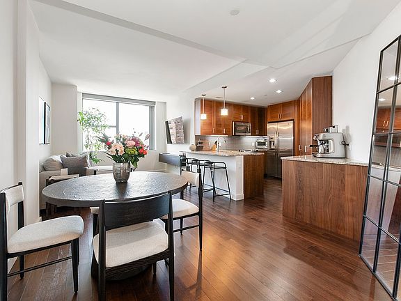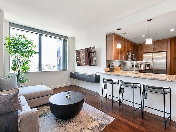 Welcome to the Aston, this new luxury building is the finest condominium in Forest Hills. This Amazing one bedroom features spacious rooms with oversized windows, high ceilings, recessed lighting, and hardwood flooring throughout. Professional kitchen is perfect for entertaining guests with center island, granite countertops, equipped with stainless appliances and custom cabinets. Bedroom accommodates a king size bed, custom closets and home office area. The beautiful spa like bathroom has radiant heated floors and kohler fixtures. This unit also includes central A/C and washer/dryer in the unit. Residents of the Aston residents have access to many amenities including fitness center, outdoor terraces to enjoy grilling and sun bathing, or views of Manhattan and sunsets. An attended lobby and on site parking make this a very special place to live. Subway lines E, F, M, R, and the LIRR just steps away with an average commute time of 20 minutes to Manhattan.