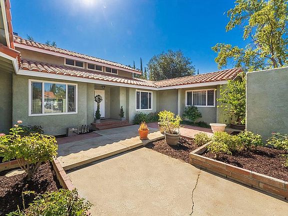 This beautiful 5 bedroom pool home located in Chatsworth is ready for your personal touch! From the courtyard in the front of the house to entertainers retreat in the backyard there is so much to love about this home! Feel the warmth of this home from the moment you walk in. A large formal dining room to your left and spacious sunken living room with slider to take you to pool is the first thing to greet you as you walk in. off the dining room is your kitchen and breakfast nook (currently being used as an office). The laundry room and bath is nearby. There is room to work and play in the family room with fireplace and built in office niche. On the other side of the house you will find 4 spacious bedrooms on the first floor with crown molding and ceiling fans plus a beautifully updated bathroom. From top to bottom this spa like bathroom is a real treat with beautiful counter tops and vanity, dual sinks and rain shower head to name just few. The primary downstairs suite has a great view of the courtyard, crown molding, extra-large baseboards, ceiling fan, dual set of wardrobes and updated bathroom with jetted tub and separate walk in shower. Head upstairs to find a huge bonus room and 5th bedroom (currently being used as a craft room). There is no shortage of access to the fantastic backyard! Step outside from the living room and family room plus access to both the hall bath and half bath from the side yard perfect for those pool parties, people wont need to run through the house all wet to use the bathroom. Once outside you can enjoy your days in the sun, splashing in the pool, soaking in the spa or relaxing under the gazebo. This backyard makes a great relaxing retreat or entertainer's dream. Close to schools, shopping, dining, and freeway access. NO HOA