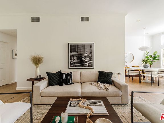 Welcome home to this beautifully updated 2-bedroom, 2-bathroom turn-key residence in a quaint, boutique building of just 15 units. Ideally located in the heart of Westwood, moments from UCLA, Westwood Village, and the best shopping, dining, and amenities on the Westside. Bathed in organic natural light, this home features soaring ceilings, wide plank oak hardwood floors, and elegant wood shutters throughout. The open-concept living and dining areas are anchored by a cozy fireplace and enhanced with recessed lighting, while sliding glass doors open to a terrace. The recently remodeled kitchen is designed for both style and function, boasting sleek cabinetry, stainless steel appliances, a built-in wine fridge, and a water filtration system. The oversized primary suite offers a tranquil retreat with its own terrace, generous closet space, and large bathroom with a soaking tub and separate glass enclosed shower. A spacious secondary bedroom and full bath provide comfort and flexibility for guests. Additional highlights include custom built-ins, in-unit laundry room, side-by-side parking, extra storage, and on-site guest parking. The HOA is professionally managed and very well run, ensuring a secure and well-maintained environment. This immaculate condo combines elegant sophistication with the intimacy of boutique living; an ideal opportunity to experience the best of Westside life. Lender-approved building, eligible for most financing.