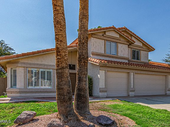 Tucked away in a quiet cul-de-sac, this two-story home offers comfort, space, and outdoor enjoyment! This gem features a 3-car garage with an extended driveway providing plenty of parking and convenience for all your vehicles. Inside, the split floor plan boasts abundant natural light, multiple living areas, an equipped kitchen, and generously sized bedrooms—perfect for everyday living and hosting guests. Both the front and back yards are designed for low-care living, while the backyard becomes a true retreat with a sparkling blue pool and a covered patio for relaxing or entertaining. You don't want to miss this awesome home!