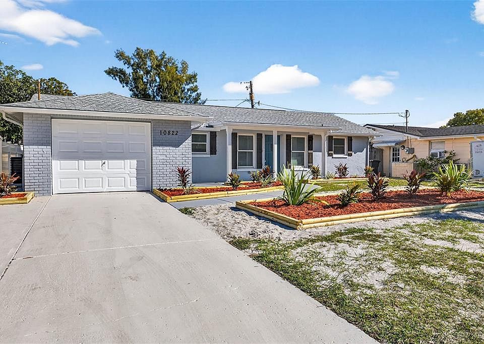 Get ready to fall in love this fully renovated home is one of Port Richey's most desirable communities. With a brand-new roof 2025 and HVAC 2025, this stunning 3-bedroom, 2 bathrooms property offers an exceptional lifestyle in one of the city's prime locations. This home was designed with comfort in mind, with smart layout that maximizes every square foot. Enjoy the elegance of freshly laid LVP floors, which are not only beautiful but incredibly easy to maintain. The kitchen, the heart of any home, is a dream come true for cooking enthusiasts, with brand new wooden shaker style cabinets, brand-new stainless-steel appliances and granite countertops. The remodeled bathrooms, with a modern design are great for relaxation. But the best part is the back yard! Imagine those sunny Florida days, cooling off in the shade and breeze in your own space, creating unforgettable memories. This home is located in non-flood zone and was not flooded or damaged during 2024 hurricanes. This home offers you the opportunity to live in great location, close to everything you need. World Famous Clearwater Beach is only 45 min drive! Please come and discover for yourself everything this incredible property is worth You will love it!