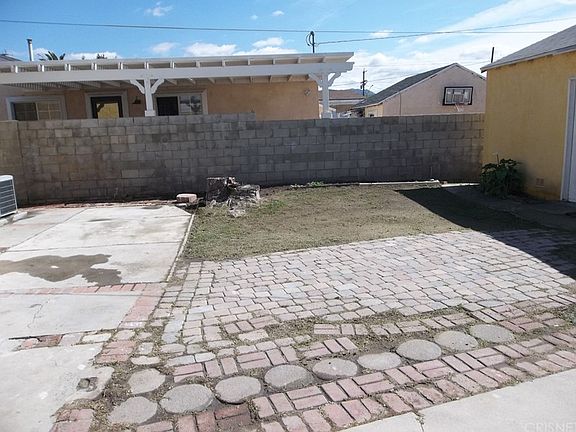 Great opportunity! Many possibilities for potential to add on or store business equipment, trucks, rv's, etc. Great access for all on this deep lot (9100+ sq.ft.) with 2 car detached garage. Newly painted and stuccoed, this home offers smooth ceilings, central air/heat and new carpeting in bedrooms and laminated flooring in living room with ceiling fan. Most windows upgraded with numerous panes. Tile counters in kitchen and new tile in bathroom. Breakfast area in kitchen with laundry room adjacent. Block walls for privacy.