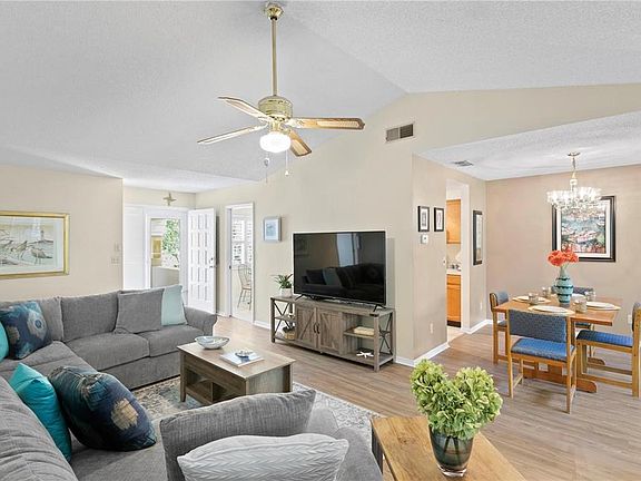 Discover your new home nestled within The Cloisters at Bardmoor, a charming condo community surrounded by lush nature walkways that take you by the picturesque Bardmoor Golf Course and Tennis Club. This second-floor condo is surrounded by an impeccably maintained community that sets a welcoming tone. Inside, the spacious, two-bedroom, two-bathroom unit features a soothing neutral palette, multiple French sliders, a vaulted ceiling, and a cozy wood-burning fireplace. Adjacent to the kitchen, you’ll find a dining room and a versatile bonus room perfect for an office or lounge area. Step out the back doors on to an expansive screened deck with views of the immaculate grounds or walk outside and enjoy the walking path that leads to the inviting pool and heated spa, serene pond, and the golf course. The primary bedroom offers views of the outdoor and includes an on-suite bathroom with a lovely shower, double vanity, and two closets, one of which is a walk-in. The split floorplan ensures privacy for the spacious second bedroom, with the second bathroom and laundry conveniently located nearby. The community boasts beautiful nearby views of Bardmoor Golf Course and Tennis Club, as well as close proximity to shopping, Gulf beaches, restaurants, medical facilities, and the Tampa and Clearwater/St. Petersburg Airports. The condominium comes with on assigned covered parking spot and guest parking. Don’t miss this rare opportunity to live in one of the most sought-after communities in Pinellas County.