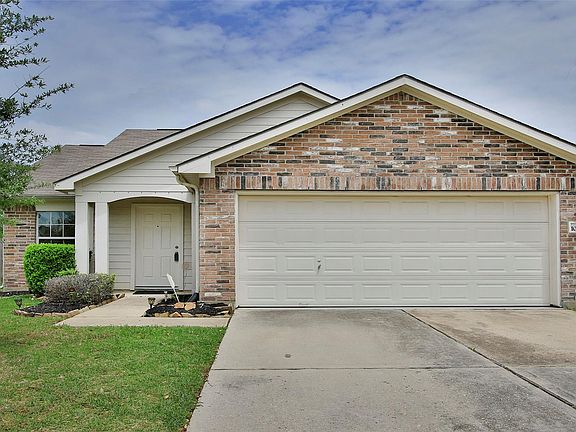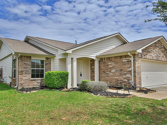 Beautifully Updated Home with Open Layout, No Carpet & Garden Views! Tile entry leads to a stylish dining room with laminate wood floors and elegant lighting. The spacious kitchen features tile flooring, gas range, granite-look counters, and a breakfast bar open to the bright family room with backyard views. The master suite offers a garden tub, separate shower, double sinks, tile floors, and dual closets. This home has no carpet throughout for easy maintenance and a clean, modern feel. Additional highlights include an indoor utility room, updated hall bath, 2-car garage with painted floor, extended tile patio, flagstone walkways, and a charming trellis in the landscaped backyard. Zoned to highly rated Blackshear Elementary in Klein ISD an excellent location for families!