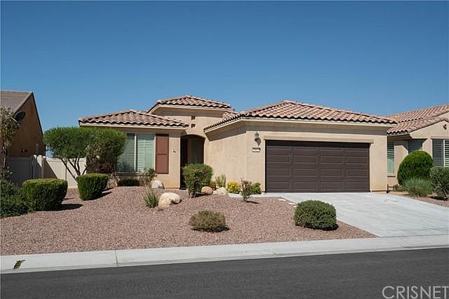 This gorgeous desert Oasis awaits you in this 55+ Community.An amazing home with an open floor plan, 2 bedrooms, 2 baths and an additional bedroom/office. Enter into the foyer and youre greeted into the wide open space of the kitchen, dining area and grand living room.This space providesnearly 180 degree views of the desert landscape and brings the features of the desert terrain right inside your home. Granite countertops, spacious pantry providing ample storage and a large entertainers kitchen island.Plantation shutters adorn all windows and sliding door provides access into the covered backyard patio. Off the living room, retreat to the main bedroom and the views continue.Main bathroom with tub for wonderful soaks and separate shower.Large walk-in closet that features a laundry shoot into the laundry room.An additionalroom can be used as a guest bedroom and/or office,a separate laundry room and garage with electric car plug in and access from the garage into the home with its own foyer with cabinets and closets for more storage.All of this creates a place of tranquility, also providing the perfect space for entertaining while being handicap friendly.No backyard neighbors allows for privacy and views of Pine and BlueRidge Mountains. Move in ready and just minutes away from Jess Ranch Lakes, Ashwood Golf Course, shopping and beautiful desert activities making this Apple Valley living at its FINEst!