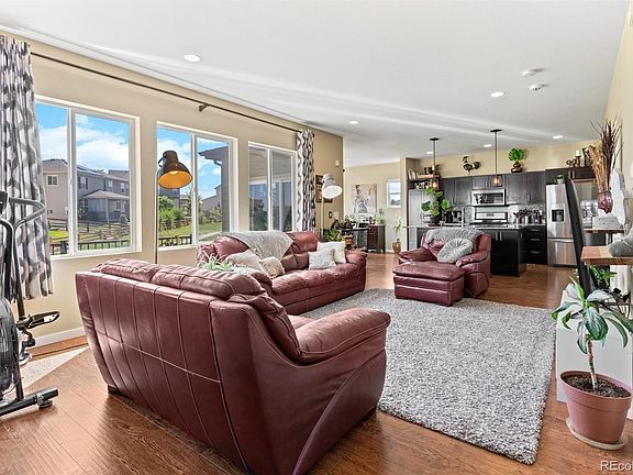 Step outside to the back patio and you’ll understand the draw. Quiet evenings with open land behind you. The neighborhood offers a 52 acre park, a public 18 hole golf course, trails, and a community lake for walks, plus events like Food Truck Tuesdays and a central recreation center to gather with neighbors. You’re about 6.5 miles from the airport, and far enough that you won’t hear it.