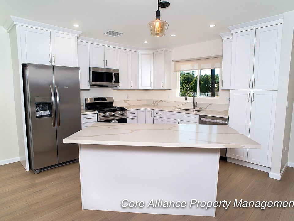 Welcome to this beautifully remodeled 3 bed 2 bathroom 1700sqft home, plus an ADU on the back of the property - It has been completely fenced out with separate access. Centrally located to malls, schools and freeways. This house boast a chef's kitchen with quartz countertops, new vinyl flooring, and all new appliances (fridge, microwave, dishwasher and gas stove). Recess light through out the house. All the bathrooms have been nicely done with quartz counter tops. This home not only has central air condition and heat, but also a separate laundry room with washer dryer included. This house has drought resistance backyard with a pool !! . Pool is for private use for this property only. 2 car garage parking with EV charger. Plenty of storage space Make this your home today