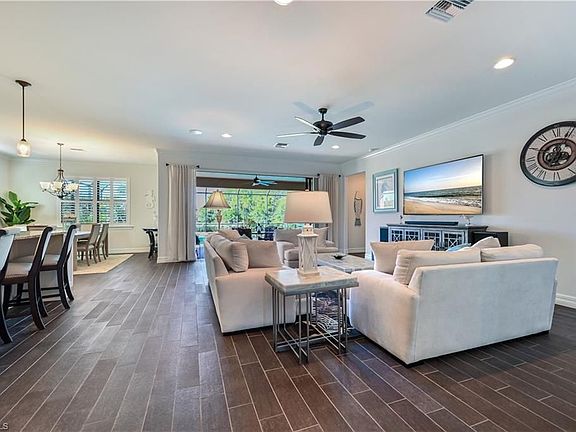 You will love this beautifully decorated, Almost NEW, 3 bedroom plus Den, 3 full bath "Pinnacle" pool home with gorgeous lake views and Southern Exposure! Entertain your guests on the oversized brick paver lanai with a wonderful saltwater pool and spa or have them stay awhile in the second master suite with it's own private bath! Upgrades galore! Gourmet kitchen package with wine cooler, extra large island and motion faucet at kitchen sink. Upgraded cabinets and Premium counter tops. Wood look tile flooring, 8' Solid Core Doors throughout. Plantation shutters and custom blinds. Custom ceiling fans and lighting. Wired for surround sound in family room. Crown molding. Epoxy floors and Utility sink in the huge 3 car garage. Premium paint and Bronze hardware throughout the entire house. Why wait to build when you can buy this home in a great location within Plantation just around the corner to the brand new amenity center w/resort & lap pool, fitness center, sauna, tennis, bocce, BBQ, & club room? Bridgetown is located in a desirable location close to shopping, restaurants, and I75. House is easy to show - Schedule your showing today!