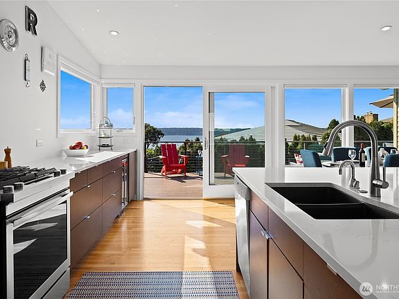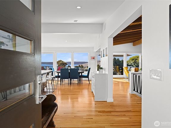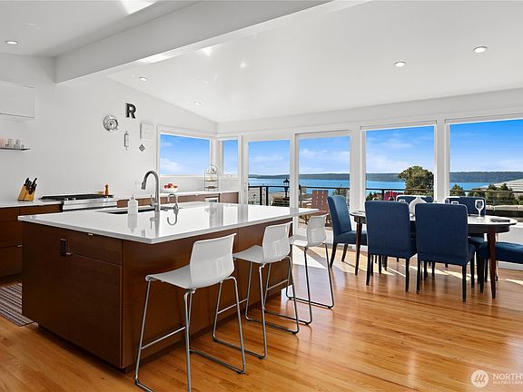 See the sun rise over the Cascades and set over the Olympics from this beautifully updated 5-bedroom MCM in the coveted Arroyos neighborhood. Nearly every system has been upgraded: new plumbing, wiring, windows, insulation, and metal roof. You'll love the very spacious remodeled kitchen perfect for entertaining, gleaming hardwood floors, sleek wet-room, and open floor plan. Outside you have a sport court, expansive wrap-around deck, plumbed grill + firepit and a fenced backyard. And it’s all just steps away from a private beach. If you’ve been waiting for a move-in ready home with thoughtful updates, breathtaking views, age-in-place ability and rare beach access in one of West Seattle’s best neighborhoods - this is the one! Pre-inspected