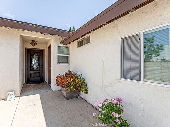 Adorned with lush green trees, the exterior enhances the home's curb appeal. Step through the main door onto custom-cut tile flooring in shades of gold and brown, complementing the travertine-designed fireplace. Recently remodeled, the kitchen boasts new glossy white cabinets that harmonize with granite countertops and a stylish backsplash. Stainless steel appliances, including those in the sale, complete the modern kitchen. Home features custom-made white wooden shutters and new recessed lighting which add a touch of elegance.