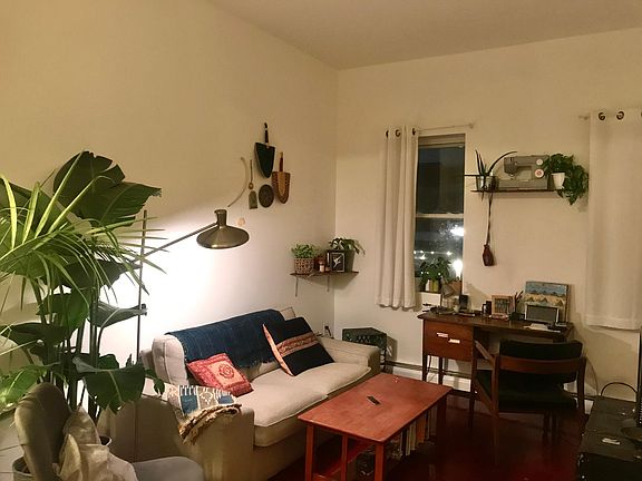 Hi there! We are two freelance creatives in our 20's working in entertainment production, and seeking someone gainfully employed in the same age range to join us in our third room. Our spacious apartment is located within 5 minutes walking distance to the Nostrand Ave A & C trains, 10 minutes from Brower Park, and 20 minutes from Prospect Park. There's also a wide variety of local businesses nearby on Nostrand, as well as on Franklin Ave two blocks away. Please reply to this post with your name, age, employment situation, and let us know a bit about your social and working habits before scheduling a tour! Thanks :) Julia & Aidan Utilities not included.