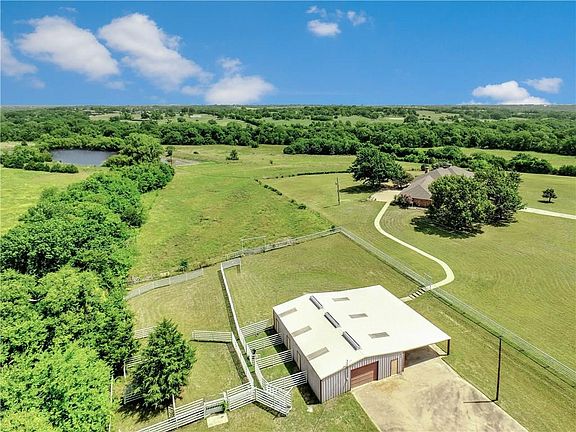 This country estate of 30 acres is part of a larger partial, has beautiful panoramic views overlooking pastures and a stocked lake. The stunning remodel, complete in 2018, includes granite & carrara countertops; hardwood and travertine flooring; and a seamless shower. The 4050 sq ft is the 3715 sq ft. main home w 4 bd & 3 full baths adjoined by a porte cochere to a approx. 335 sq ft. separate quest quarters with bedroom, kitchen and full bath which could be used as a home office with a separate entrance. Covered patio and large outdoor area for entertaining and BBQ's. 3 stall, 36 x 48 barn with 24 ft overhang for extra covered parking, corrals and divided pastures. New roofs July 2018 on main home & barn!