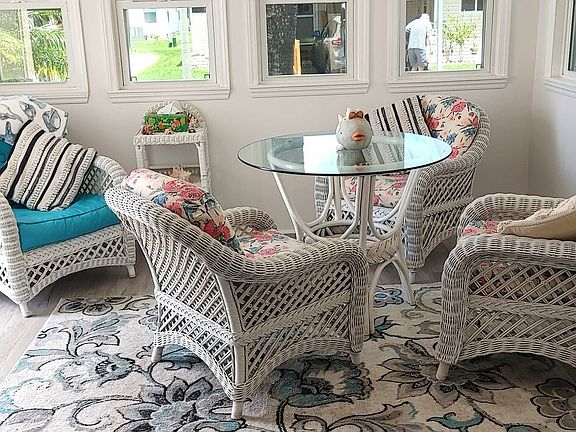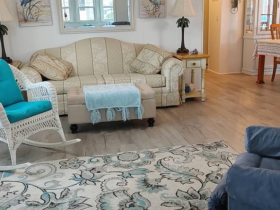 This 2 bedroom, 2 bath home is move in ready. It has many upgrades including, new vinyl plank flooring, new windows, new siding, new granite countertops, new walk in shower, glassed in lanai on front of home, screened in lanai on side of home, new appliances, new light fixtures, new vanities, metal roof, and is located on a perimeter lot.