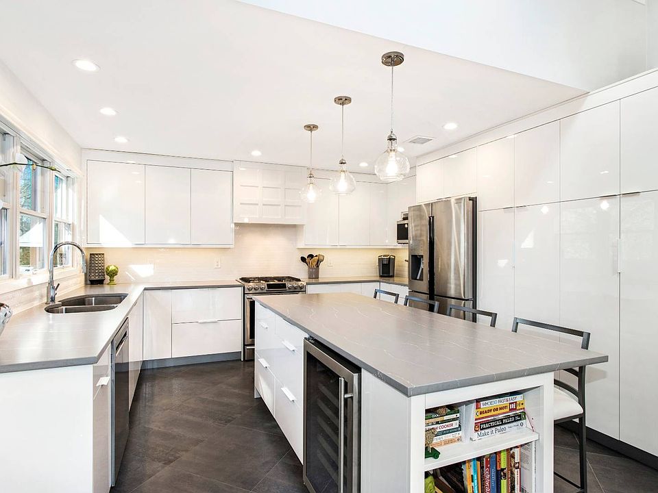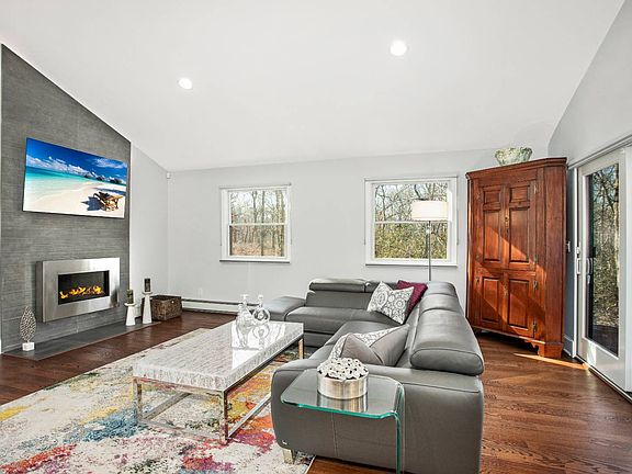 Rental Registration #: RP200428 Like-new renovated contemporary in a quiet Sag Harbor setting. The open-floorplan living and dining space features a vaulted ceiling with sky lights, an inviting gas fireplace, and three sunny exposures overlooking a serene wooded landscape and large back deck. The bright and clean new kitchen features quartz countertops, a separate wine refrigerator, a gas range, and a large island that seats four guests. The private spaces of the home are composed of three bedrooms and two full bathrooms. The master suite includes a separate walk-in laundry closet as well as a spa-like master bathroom with an enormous multi-head shower, standalone soaking tub, dual vanities, and a separate water closet. Both the master bedroom and a guest bedroom also offer direct access to the back deck, which leads to the separately fenced sunny pool and pool deck. The third bedroom is currently set up as a home office/study, but a queen bed can be placed in the room for a traditional third bedroom. All interior and exterior surfaces of the home have been recently refreshed or replaced, with new hardwood floors, new double-pane windows, new window treatments, new tile and bathroom fixtures, and fresh paint throughout. An alarm system, one-car garage, and central air complete this immaculately kept home. Centrally located within moments to Sag Harbor Village, Sagaponack, and Bridgehampton. Don't pass this one up. EHRR #RP200428