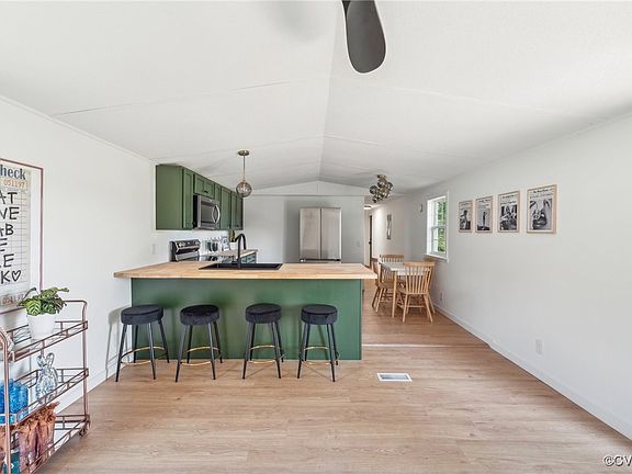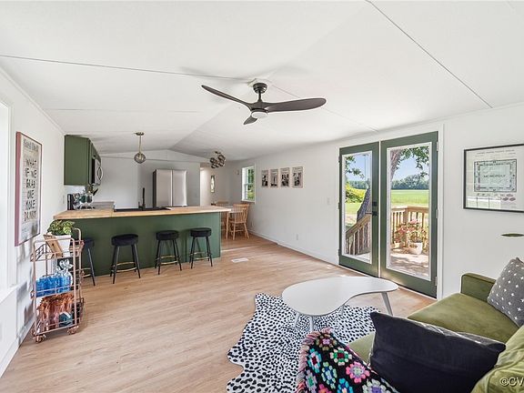 Welcome to this fully updated manufactured home situated on an acre of land. This property WILL qualify for a loan, because it was built in 1992 and is sitting on a permanent foundation. Step inside to find NEW LVP flooring and drywall throughout, complemented by an updated kitchen featuring butcher block countertops and new stainless steel appliances that come with a warranty. The bathrooms have also been tastefully updated, providing modern comfort and style. Natural light floods the living space, especially through the French doors that lead out to a back deck, perfect for enjoying the beautiful sunsets. The home is equipped with a new HVAC system and a newer hot water heater, ensuring efficiency and peace of mind. Outside, the property boasts a circle driveway and new landscaping, including banana trees lining the front. The backyard is a serene retreat with a tree swing and expansive views of open fields, offering peace and quiet. This stunning home is a perfect blend of modern updates and tranquil surroundings, ready to welcome you.