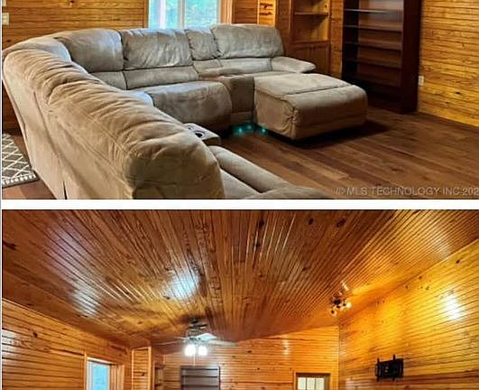 Enjoy the wildlife at your own little paradise near the lake! Steel home on 6 m/l beautiful acres close to Spavinaw and Hudson Lakes. New wood flooring throughout, ceramic tile in kitchen, pantry and all bathrooms, and fresh paint throughout. There is even room to park your boat or RV in the 3 car garage Includes appliances shown in pictures. 3 BR, 3 Bathroom, 3 Bay Garage. Very well maintained home, that has that cozy feel. Close to Spavinaw Creek as well. Would also make a good vacation home or AirBnB. Only one neighbor and they aren’t 10’ away :) We will manage all of the Legal documents and getting a title company. NO RELATOR FEES. Which can cost upward of $20k!!! We will pay for legal paperwork as well. IF you are prior military you can assume the loan for country home on 6 acres—meaning you keep current interest rate we have (3.5%). The VA helps us do it all. Message for more details and to schedule showing. Becca 9186094723